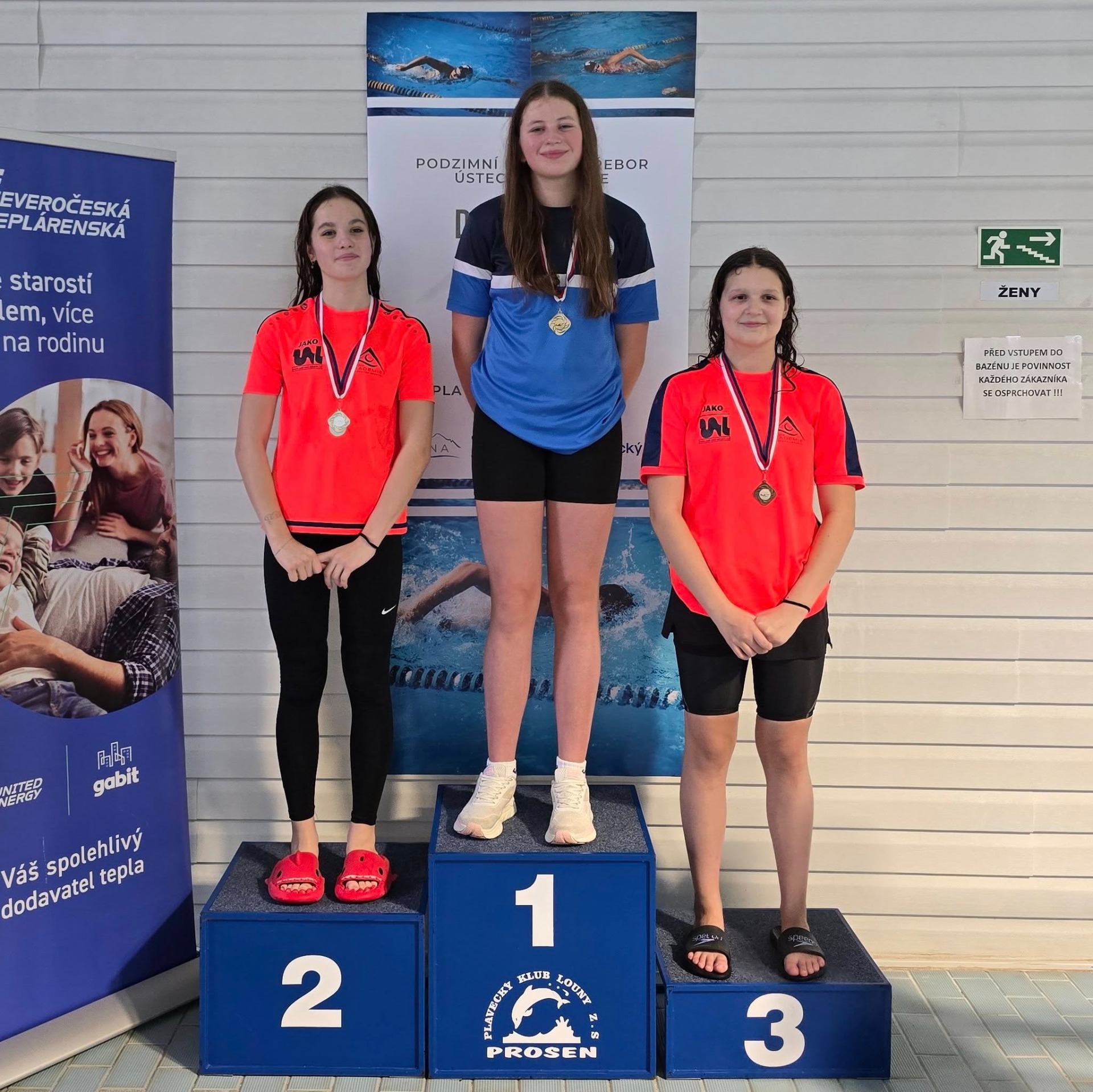 Krajské přebory dlouhých tratí Ústeckého kraje – Bílina, 15. 11. 2025 Naši plavci předvedli fantastické výkony a domů vezeme parádní medailovou sbírku! Nela suverénně ovládla 800 m VZ napříč všemi kategoriemi a brala zlato i mezi juniorkami. Tobiáš potvrdil svou dominanci na 1500 m VZ ve sve katogorii a rovněž bere zlato. Šárka skvěle zaplavala 800 m VZ a zaslouženě si odváží stříbro. Matěj doplnil naši sbírku bronzem na 1500 m VZ.Všichni si zaplavali osobní rekordy! Fantastická práce, obrovská gratulace všem!